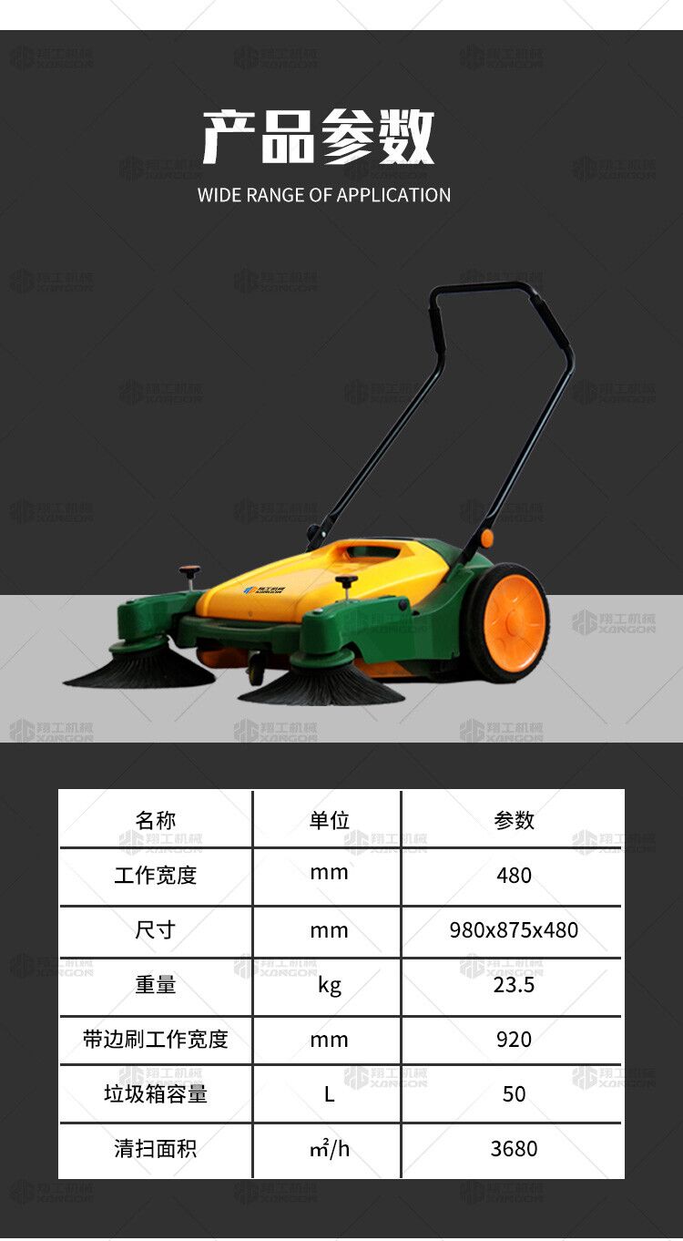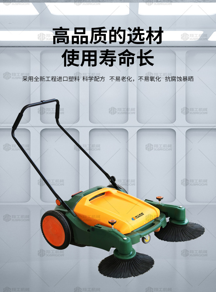 X920型全自动手推式扫地机操作简单,工作效率高,省时、省力,是非常节能环保的扫地设备。它可以用于自家庭院的清扫,也可以用于工厂地面、公园地面、马路的清扫,应用广泛。